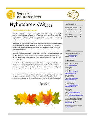 Här finner ni Svenska neuroregisters nyhetsbrev för tredje kvartalet kvartalet 2023 (pdf, 1198kB).